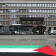 Na ljubljanskem Trgu republike je danes potekal shod za Palestino, ki ga je pod geslom Konec nasilju - konec apartheidu pripravilo gibanje za pravice Palestincev.