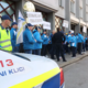 Okoli 200 policistov, zbranih na shodu pred vladnim poslopjem na Gregorčičevi ulici v Ljubljani, kjer na redni seji zasedajo ministri, je z žvižgi in transparenti pozvalo k izboljšanju pogojev za …