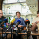 Direktorica Inštituta 8. marec Nika Kovač, novinar Mladine Borut Mekina, raziskovalec družbenih omrežij Filip Dobranić in izraelski komunikacijski strokovnjak za digitalno manipulacijo Achiya Schatz na novinarski konferenci predstavljajo ozadje prisluhov …